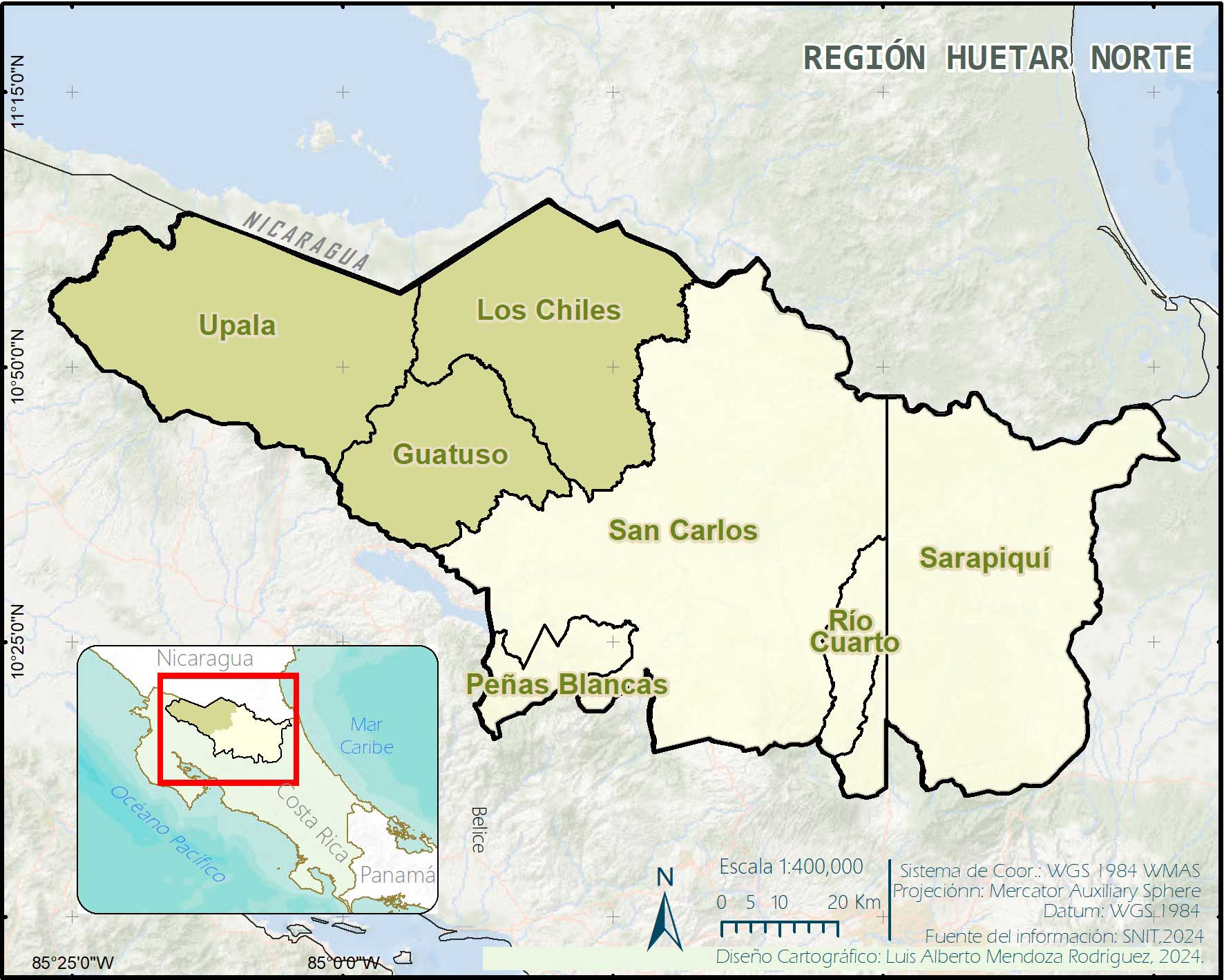 The HNR corresponds to a political-administrative division proposed in 1974 by the Ministry of National Planning and Economic Policy (Mideplan) and is composed of various territories in the northern part of the country. The map in Figure 1 illustrates its location.